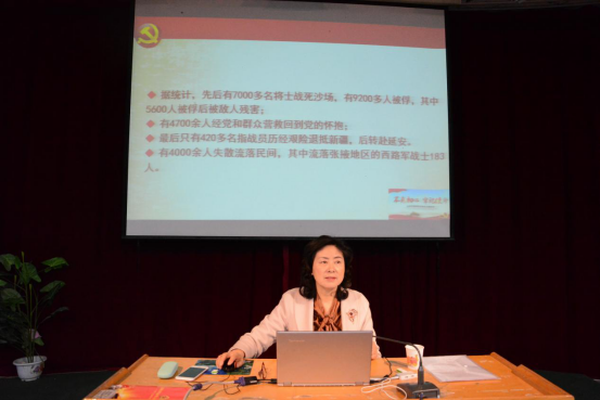 王国华从红西路军组成的背景、红西路军征战河西走廊的艰难历程及其历史功绩、革命精神等方面作了全面讲解,对师生们深入认识红西路军征战河西走廊的历史细节与红西路军精神等具有重要启示,使师生们受到了一场生动的爱国主义和革命传统教育。