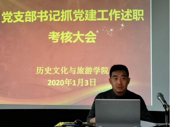 2020年1月3日,9499www威尼斯在旅游综合实验室召开2019年度党支部书记抓党建述职评议考核大会。党总支负责人主持会议,党员师生代表50多人参加了会议。
