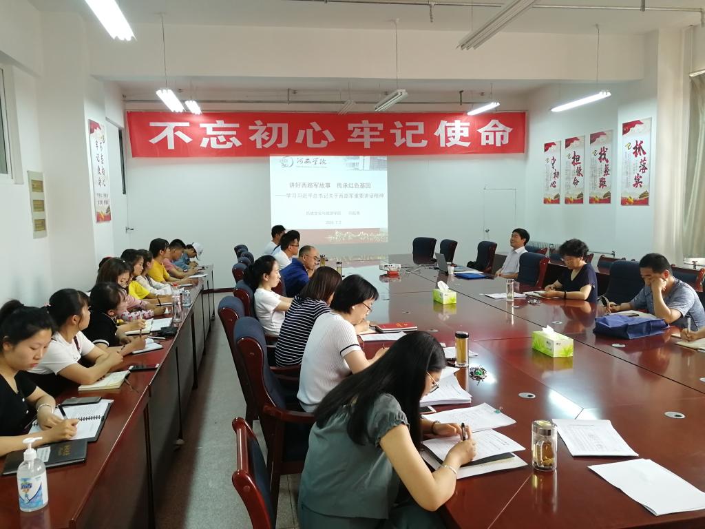 首先,闫廷亮教授为学院全体党员上了《讲好西路军故事,传承红色基因——学习习近平总书记关于红西路军重要讲话精神》专题党课。党课围绕习近平总书记关于红西路军重要讲话精神、深刻把握红西路军历史的特点、红西路军精神的主要内涵等方面重点就如何“讲好西路军故事、传承红色基因”做了生动细致的讲解和阐释。
