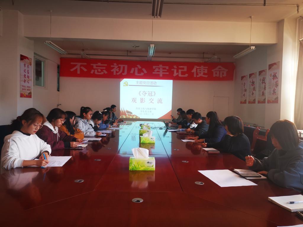 10月31日,9499www威尼斯学生党支部组织全体党员集体观看了电影《夺冠》。11月6日,学生党支部在学院会议室举行了“电影《夺冠》观后感交流”主题党日活动,学生党支部在校全体党员参加了交流会。