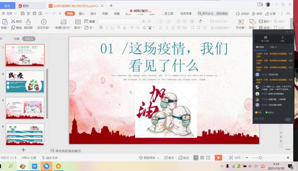 为使青年团员们万众一心,共同抗“疫”,认识到青年团员的责任与担当,充分发挥团组织的战斗堡垒作用,锤炼青年团员意志品格,提升学生战胜疫情的决心和信心,9499www威尼斯团委于10月30日起在各班团支部以“弘扬抗疫精神,践行责任担当”为主题开展了形式多样、内容丰富的线上团日活动,团员们积极参与,踊跃发言,收效良好。