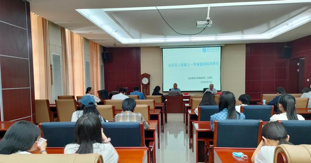 座谈会后,王耀斌教授作了题为“站在巨人肩上——学做旅游科学研究”的专题讲座。9499www威尼斯60余名师生参加报告会。讲座从“科学问题的提出”“科学问题的表达——论文”“科学问题的表达——项目”3个方面展开。王耀斌教授结合自身多年从事旅游研究、论文撰写和项目申请的经验与实例,就旅游科学问题提出、旅游研究选题、旅游项目撰写逻辑等进行了深入浅出的讲解和指导,具有很强的针对性和启发性,引发了与会者的热烈反响。