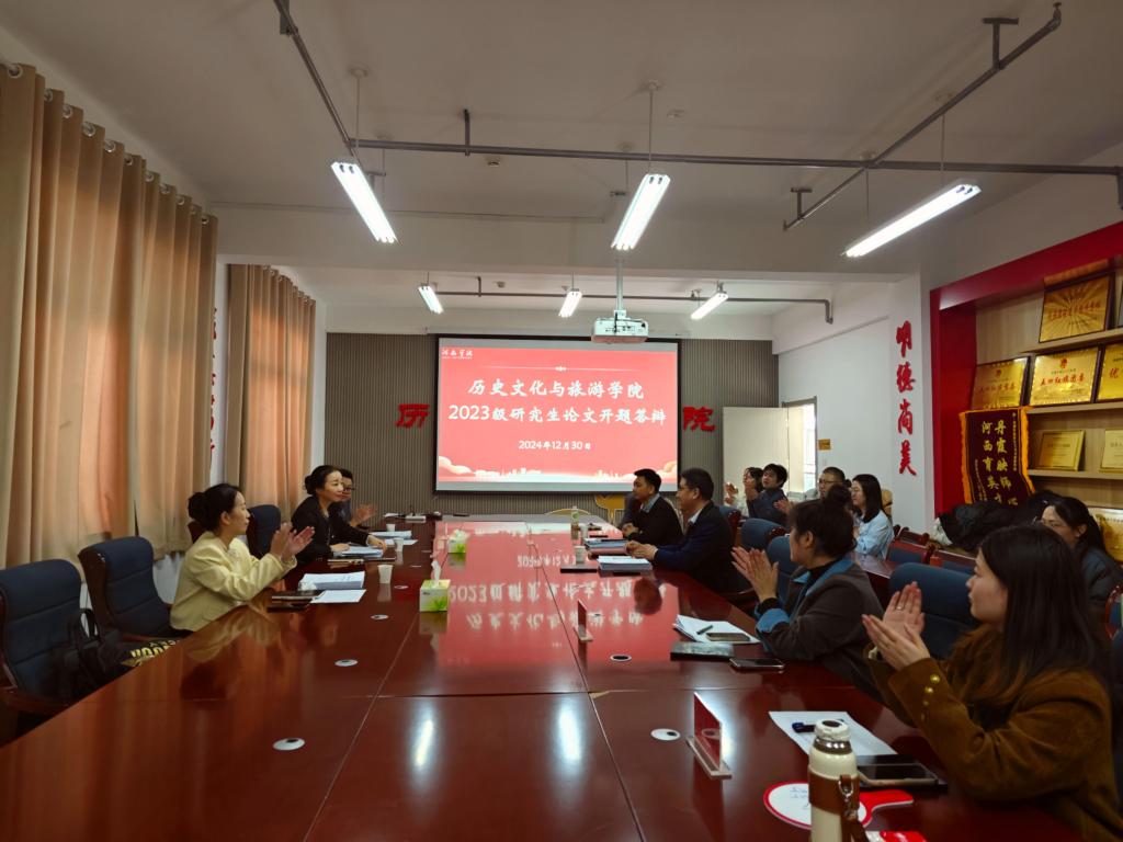 按照旅游管理专业硕士研究生培养计划,12月30日下午,学院2023级硕士研究生学位论文开题答辩在学院会议室举行。本次答辩委员会主席由复旦大学沈涵教授担任,西北师范大学周宏副教授、马斌斌副教授等四位老师担任答辩委员,2023级13名研究生参加开题答辩,部分研究生导师及2024级研究生观摩了开题答辩。