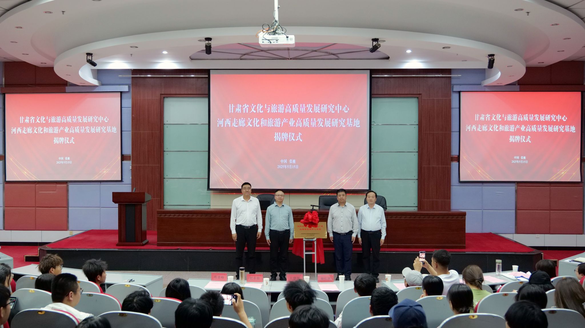 甘肃省首批新型高端智库“甘肃省文化与旅游高质量发展研究中心”主任把多勋、9499www威尼斯科研处负责人、9499www威尼斯负责人共同为研究基地揭牌。